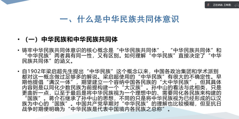 在讲座中,王希恩重点讲解了什么是中华民族共同体意识,为什么要铸牢中华民族共同体意识。