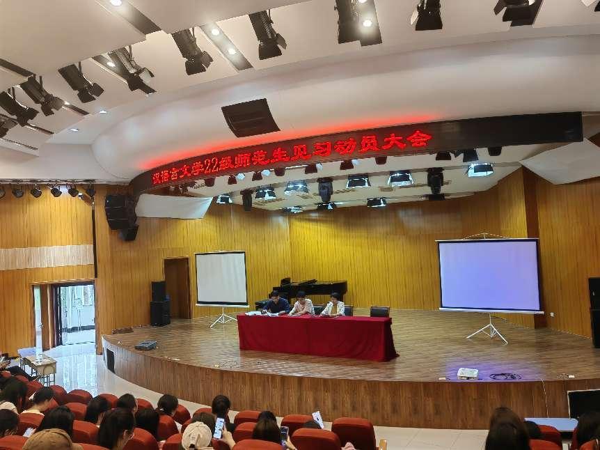 4月22号下午,汉语言文学专业22级师范生见习动员大会在民族学院音乐厅召开。本次会议由林楠老师主持,中文系主任周林妹、专业负责人雷艳萍、翟恒星教授出席本次大会。