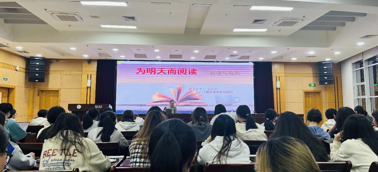 11月3日晚,中文系93级校友、丽水中学校长陈战耕于图书馆9楼两山报告厅开展了题为“为明天而阅读——阅读与成长”的专题讲座。此次讲座由汉语言文学专业负责人雷艳萍老师主持,2024级中文系全体学生参与。