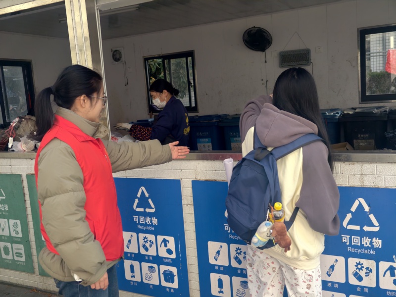 在清理整治的过程中,志愿者们还主动向过往同学讲解分类知识、普及分类意义,现场示范正确的分类投放方法,引导大家从身边小事做起,养成分类投放的良好习惯。这种实践与宣传示范相结合的模式,让垃圾分类的环保理念不再停留于口号,而是真正融进日常生活,深入人心。