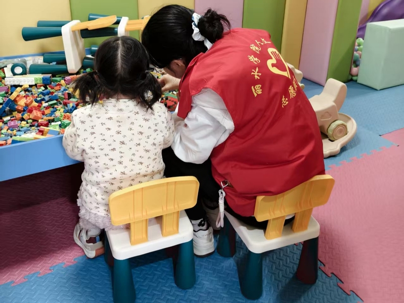 在每周固定的服务时间里,托育中心化身为充满笑声的“成长乐园”。志愿者们不仅细心照看每位小朋友,更主动融入他们的世界:在积木区协助搭建“梦想城堡”,在亲子阅读区讲述绘本故事,在游玩区引导孩子们学会分享。有家长表示:“志愿者不仅陪孩子们玩得很开心,还教会他们团结合作、排队等待,这些小小的进步让我们特别欣慰。这种活动对于我们双职工家庭来说就是雪中送炭。”在活动的最后,不少孩子展现出令人惊喜的成长:从最初需要志愿者全程牵着手参与活动,到后来能主动帮助整理散落的海洋球;从平行玩耍到学会主动邀请同伴一起玩摇摇椅。这些细微却重要的成长,恰是“小橘灯”托育服务希望点燃的温暖光亮——它不强调刻意的教导,而是在守护与欢笑的日常中,让规则意识在整理玩具时悄然成形,让共享精神在共同游戏中自然生根。