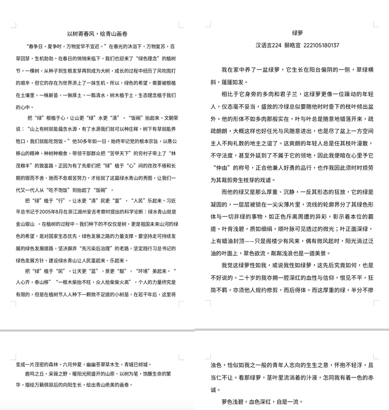 大赛以“倡导绿色种植的理念,呼吁学生参与到环境保护中去”为宗旨,从“绿色、环保、文明”的角度出发,呼吁学生爱护植物,绿色环保。同学们在活动过程中积极主动地关注环境问题,纷纷发挥特长,用美图或美文的形式,道出一段段植树节寄语,分享自己与绿植的有趣故事,或写下关于植树节的心得。学院收到了大量学生投稿。清新、生机盎然的绿植相片传递出学生对绿植真挚的感情,“这绿萝更像一位躁动的年轻人,仪态毫不妥当,盛放的冷绿总似要随他时时垂下的枝叶倾出盆外”“一枝新桃醒东风,雨濯花尘”,清浅、细腻的文字表现出他们爱绿、护绿的热情。