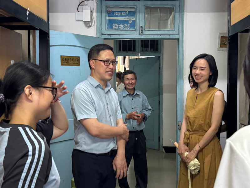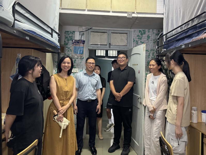 9月14日下午,为深入了解我院2025级新生入住情况,引导同学们尽快适应新环境、新生活,我院院长余厚洪、党委书记张璐、党委副书记刘书增带领全体学生科辅导员一行深入英语、汉语言文学以及民族学专业新生所在寝室,传递学院关怀,为初入校园的新生送上温暖与鼓励。