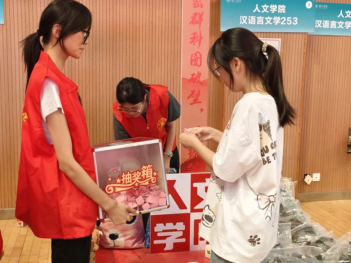 迎新活动现场热闹非凡。新生们零距离感受非遗文化,花鼓戏独具神韵,非遗摊位人头攒动。此外,学院为新生们准备了院训书签、植物盲盒等具有纪念意义的丰富礼品,新生在完成信息核对和材料上交后便可参与幸运抽奖。小小的抽奖箱满载着祝福与期许,为新学期带来好运满满。