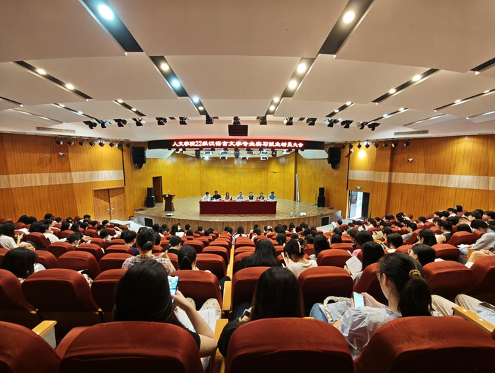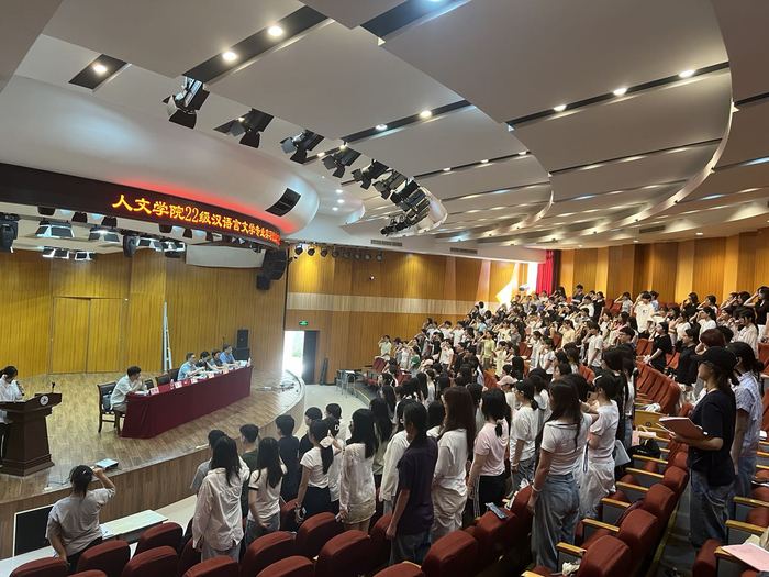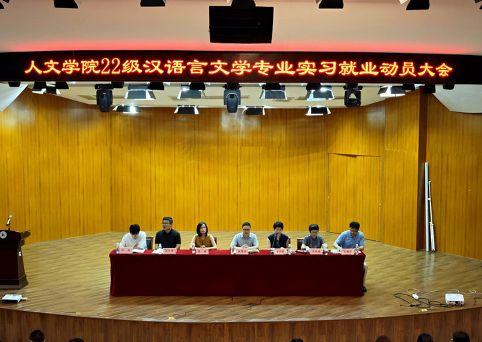 为进一步优化师范生教育实习工作,引导学生深入理解实习安排,明确实习目标,9月14日,人文学院在音乐厅隆重举行2022级汉语言专业师范生教育实习就业动员大会。人文学院党委书记张璐、院长余厚洪、副书记刘书增,中文系教育实习相关指导老师与汉语言专业2022级师范专业全体同学共同出席了动员会,会议由副院长蒋婷婷主持。