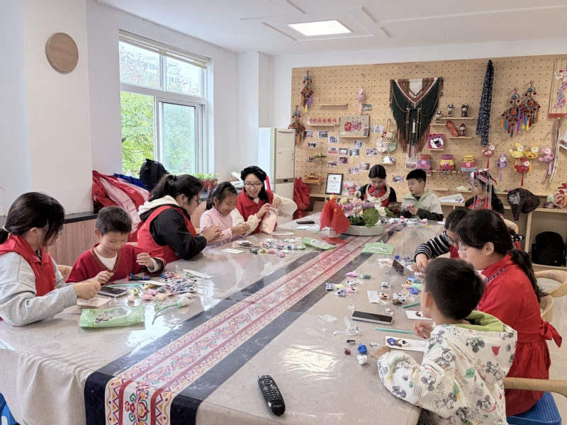 粘土手工环节以其独特的文化教育价值和生动的实践形式,成为了整场活动最引人注目的部分。在志愿者一对一协助下,小朋友热情投入,专心致志地揉捏着手中的各色粘土。从辨识维吾尔族特色花帽的鲜艳纹样,到还原苗族银饰的精致细节,志愿者不仅细致演示制作技巧,更在互动中讲解文化寓意,将创作经过转化为生动的文化课堂。这一过程不仅将民族文化知识转化为可触摸、可创造的具体体验,更将“各民族绚丽多彩,中华文化和谐共生”的宏大主题以一种直观而深刻的方式内化于孩子们心中。