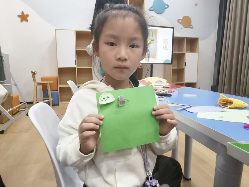 本次活动分为节气溯源、时令风雅和匠心巧做三个环节,层层递进,为小朋友们构建一场立体而温暖的立冬文化体验。在“节气溯源”环节,志愿者以拆字释义、经典解读为切入点,阐明立冬作为“四时之终始”的节气定位,结合李白“醉看墨花月白,恍疑雪满前村”诗句,引导儿童从文字本源与文字意境中,构建对立冬节气自然规律、人文意向的立体认识。步入“时令风雅”环节,志愿者以谚语为匙,以美食为媒,让孩子们在“补冬,补嘴空”的习俗中读懂先民顺应天时的生活哲学,在饺子、糍粑等时令风味中感悟中华民族“民以食为天”的人间烟火,将那份源自传统的温暖编织进他们成长的记忆。最后的“匠心巧做”环节,在志愿者的耐心指导下,孩子们用画笔在纯白纸页上描摹,单调的线条逐渐充盈,化为一只只圆润饱满的饺子。他们绘出的不仅是食物的形态,更是团团圆圆的情感根脉。这一刻,抽象的文化基因在笔尖流淌,转化为可触可感的情感连接,完成了从认知到认同的自然过渡。