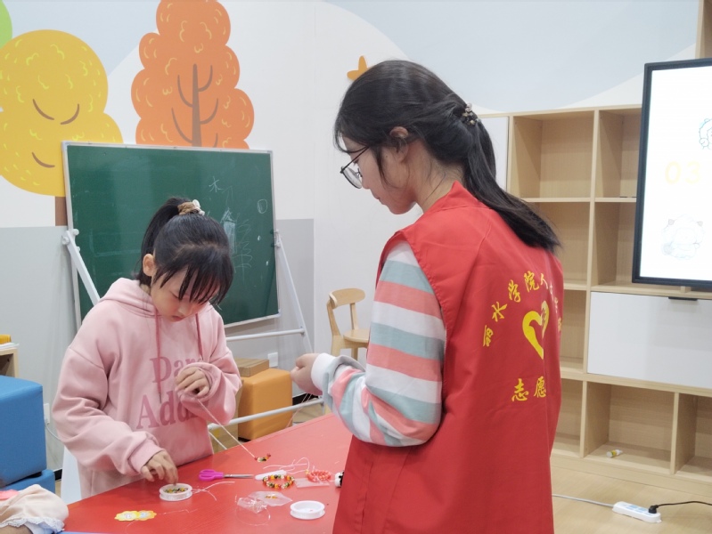 活动在“指尖创意串美好”手工环节迎来高潮。志愿者指导小朋友们挑选彩色串珠,将“开心”“勇敢”“平静”等美好情绪赋予色彩,串成具有别样意义的五彩手链,并鼓励他们上台展示,让成就感与幸福感在现场传递。
