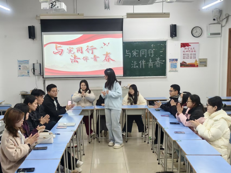 为响应全面依法治国战略部署、落实普法宣传要求,培育青年法治素养、凝聚法治建设青年力量,12月5日,我院举办“与‘宪’同行,‘法’伴青春”国家宪法日趣味普法活动。活动以沉浸式体验唤起学生法治兴趣与认同,是落实“浙江省第五个‘宪法与浙江’主题宣传月”要求的生动实践。