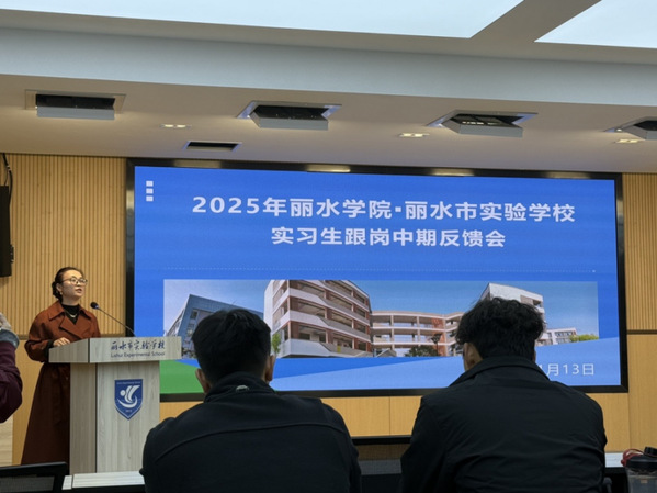 11月14日,为进一步强化实习生的职业规范意识与成长规划,丽水实验学校杨丽佳校长以《守正笃行,反思致远——实习成长路上的方向与坚守》为题,杨校长围绕“纪律筑基、榜样引路、反思赋能”三大核心,带来了一场兼具温度与力度的实习指导讲座。杨校长强调,纪律是职业素养的基石,也是教育工作者的立身之本。她要求实习生严格遵守学校的各项规章制度,规范考勤管理,注重言行举止,以严谨认真的态度对待每一项实习任务,在日常工作中践行教师的职业准则,树立师范生的良好形象。她详细介绍了丽水实验学校的语文教师队伍建设情况。她谈到,学校语文组汇聚了一批兼具教学经验与创新活力的优秀教师,他们深耕课堂、潜心教研,在核心素养落地、课程创新设计等方面积累了丰富经验,鼓励实习生多与指导老师交流。