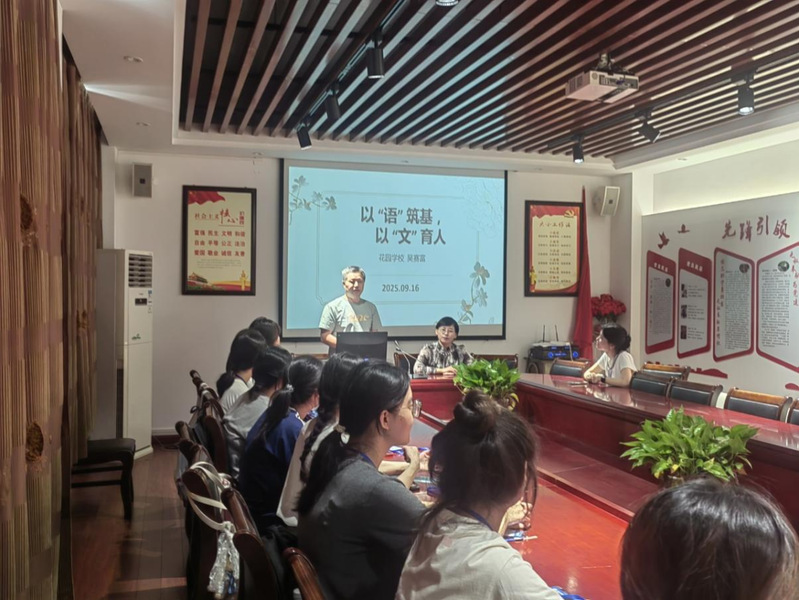 2025年9月16日,花园学校吴赛富老师以《以“语”筑基,以“文”育人》为题带来专题讲座。吴老师结合自身多年中学语文教学经验,围绕“语文教学的核心素养落地”“师范生课堂实践技巧”两大核心展开分享。他强调,中学语文教师既要坚守汉语言文学的专业根基,以深厚的文字功底、文学素养为学生搭建知识体系,更要秉持“育人”初心,在教学中渗透人文关怀、审美培养与价值引领。针对实习生初入课堂可能遇到的“教学设计与学情适配”“课堂互动氛围营造”等问题,吴老师通过具体课文教学案例拆解、课堂突发情况应对技巧分享,为实习生提供了可操作、接地气的实践指南。讲座后,实习生们与导师展开深入交流,为即将开启的教学实践筑牢了信心与基础。